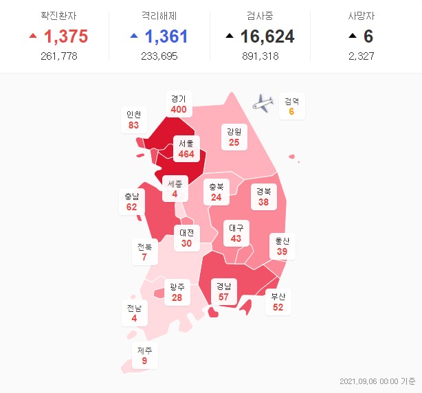 요즘 코로나 바이러스의 확산세가 정말 무섭습니다. 9월 6일 0시 기준 국내 코로나 일일 확진자는 총 1,375명(국내 1,351명 해외 24명)이 추가되었습니다. 하루 신규 확진자가 아직 1,000명 이상을 기록하고 있어서 현행 사회적 거리두기도 한 달 더 연장되었습니다. 수도권은 4단계, 비수도권은 3단계입니다.