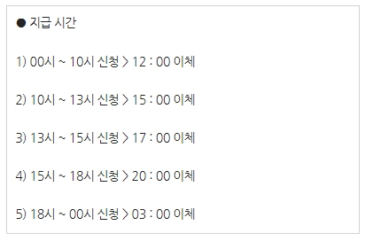 이전 회차와 동일하게 지급되는 시간은 1일 5회로 신청한 시간대에 따라 지급되는 시간이 정해져 있으니 아래의 내용을 참고해 주시기 바랍니다.