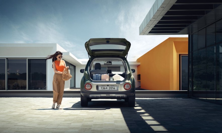 가장 특이한 점은 1열의 시트가 접힌다는 것입니다. 2열에 앉아서 1열 시트를 접은 뒤 앞으로 다리를 쭉 펼 수 있습니다. 또한 2열까지 내부 시트를 모두 접으면 비록 경차이지만 캠핑하는데 불편함이 없을 것으로 생각됩니다.